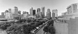 Aerial view downtown Houston illuminated at sunset with green city park and modern skylines light. The most populous city in Texas, fourth-most in United States. Architecture and travel background.