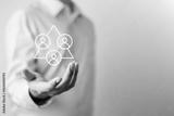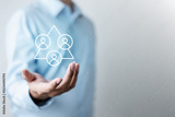 Human resources management technology concept. HR report software. Hiring job. People, Employees data analysis. System integration. ERP system. HR tech business.