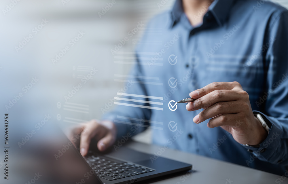 Checklist business report concept. Check mark opinion. Tick checkbox survey. Checkmark.