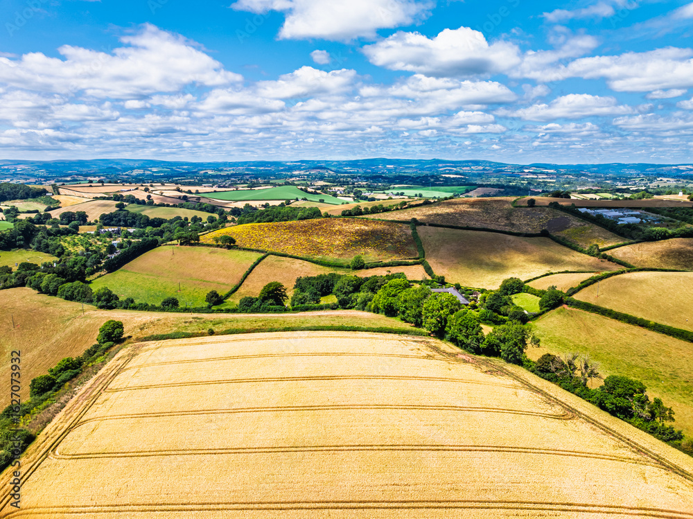 Farms and Fields over Torquay from a drone, Devon, England
