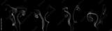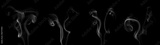Close-up photo set of abstract white smoke or incense sticks floating on black background. Fog and clouds effect for design. Smog elements.