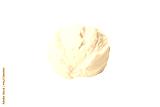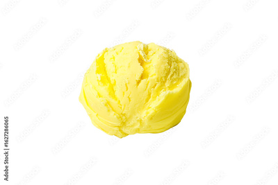 Yellow butter scoop placed on a white surface, isolated on white, PNG