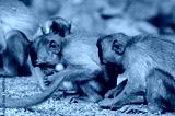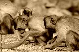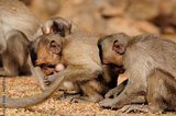 wild rhesus monkeys on Can Gio Island in south Vietnam looking for food.