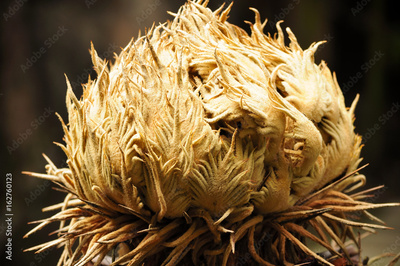 A dried out flower bud on a plant within shen's garden in shaoxing China in Zhejiang Province.