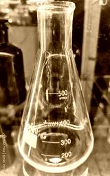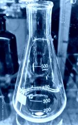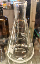 Laboratory glass flask characterized by its flat bottom, conical body, and cylindrical neck. The flask has graduations indicating volumes up to 500 mL.