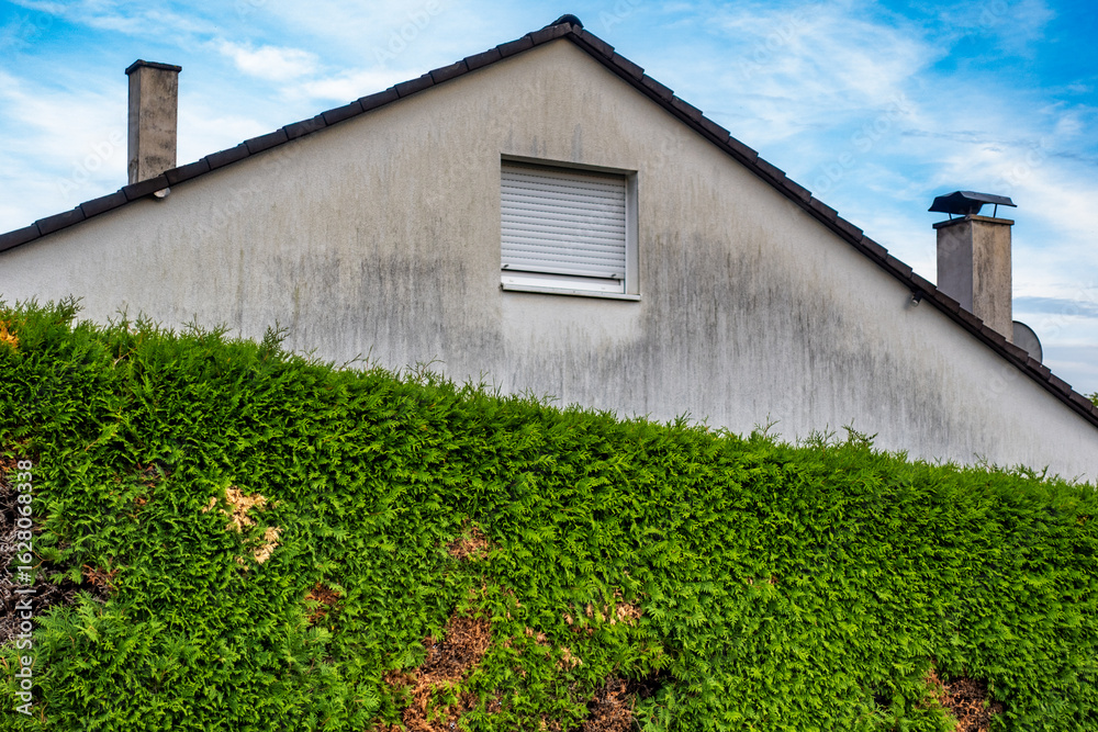 Feuchte und verschmutzte Hauswand