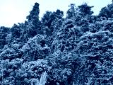 Lush green tropical trees and create a solid wall of foliage, filling the entire frame. The overcast sky suggests a humid, natural environment. This image can be used for projects related to nature.