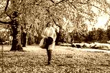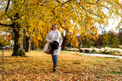 Portrait of beautiful mature woman in autumn scenery