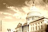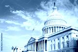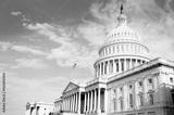 United States Capitol Building in Washington DC on Bright Sunny Day with Blue Sky