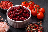 Red beans canned as an ingredient for cooking healthy or vegetarian food. Canned beans