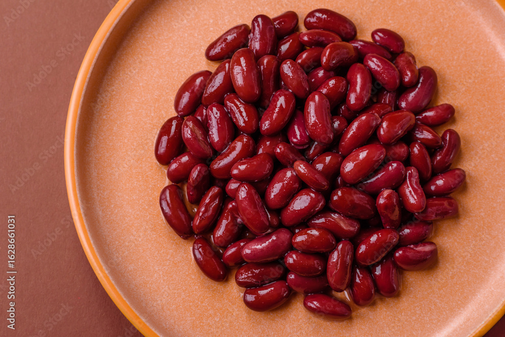 Red beans canned as an ingredient for cooking healthy or vegetarian food. Canned beans
