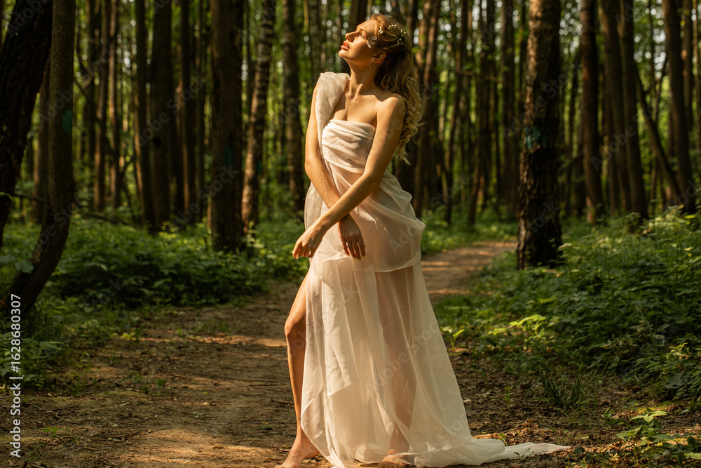 Portrait of a young beautiful girl in the image of a forest nymph