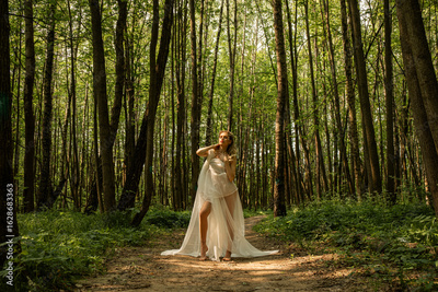 Portrait of a young beautiful girl in the image of a forest nymph