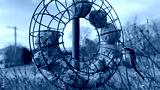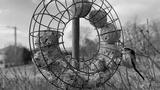 Long-tailed tit perched beside circular wire bird feeder filled with suet seed balls in early spring garden, wild songbird feeding in calm countryside setting with soft daylight
