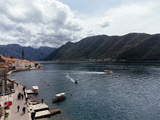 Drone view of the old town of Perast in the bay of Kotor, Montenegro