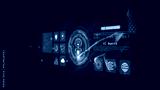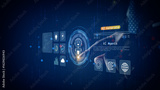 Futuristic digital interface showing AI agent hologram with businessman interaction, representing intelligent automation in business and technology. 3d Rendering