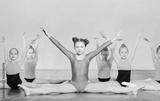Girls performing splits during gymnastics class