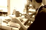 Pottery teacher looking at clay mug make by a student on throwing wheel on table in class or studio.