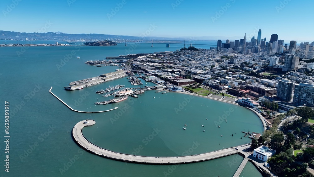 Bay Area In San Francisco California United States. Aerial View Of A High-Rise Buildings And Traffic Showcasing Urban Life. Industrial Skyline Skyscrapers Amazing. Industrial Cityscape.