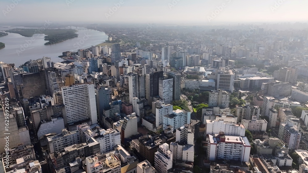 Porto Alegre Skyline In Porto Alegre Rio Grande Do Sul Brazil. City Skyline Showing Modern And Traditional Architecture. Town Sky Clouds Backgrounds Urban. Town Panorama.