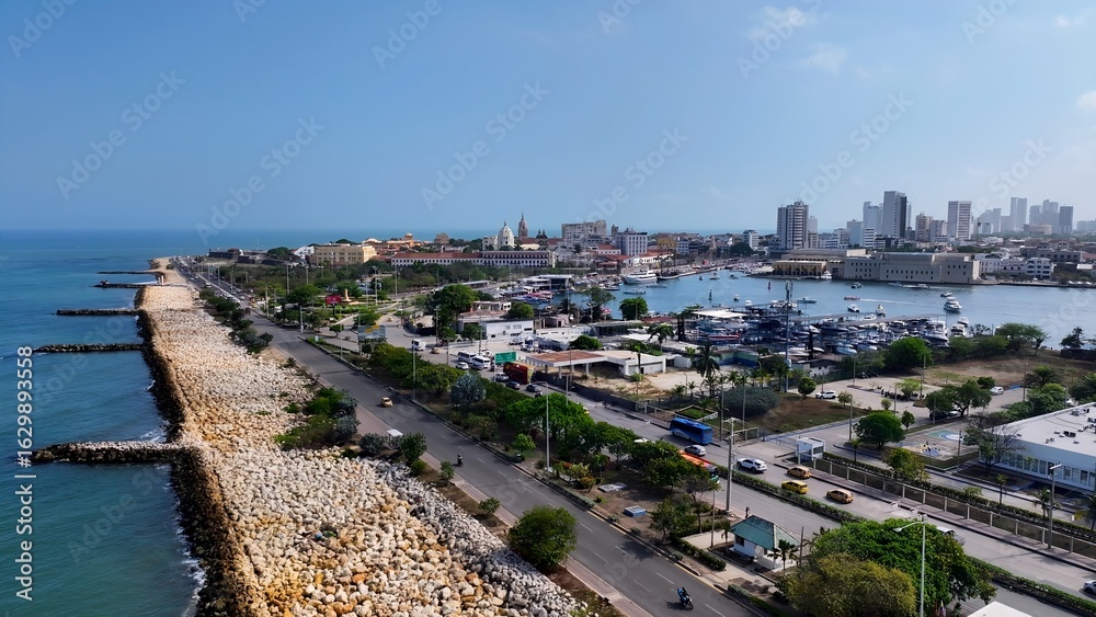 Church In Cartagena Das Indias Bolivar Colombia. Bird Eye View Of Church Standing Tall Amidst Beautiful Scenery. Town Sky Backgrounds Urban. Outside Backgrounds Up Above.