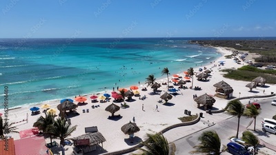 Arashi Beach In Oranjestad Caribbean Netherlands Aruba. Turquoise Water Caresses Tropical Beach In A Caribbean. Shore Clouds Sky Beach Sea. Shore Travel. Oranjestad Caribbean Netherlands.