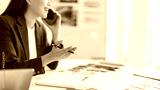 Asian woman designer architect taking client phone call discussing interior plans material selections modern professional workspace business communication happy
