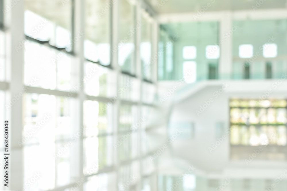 Office building blur background business lobby reception hall interior or empty indoor foyer meeting room with blurry light from glass wall window