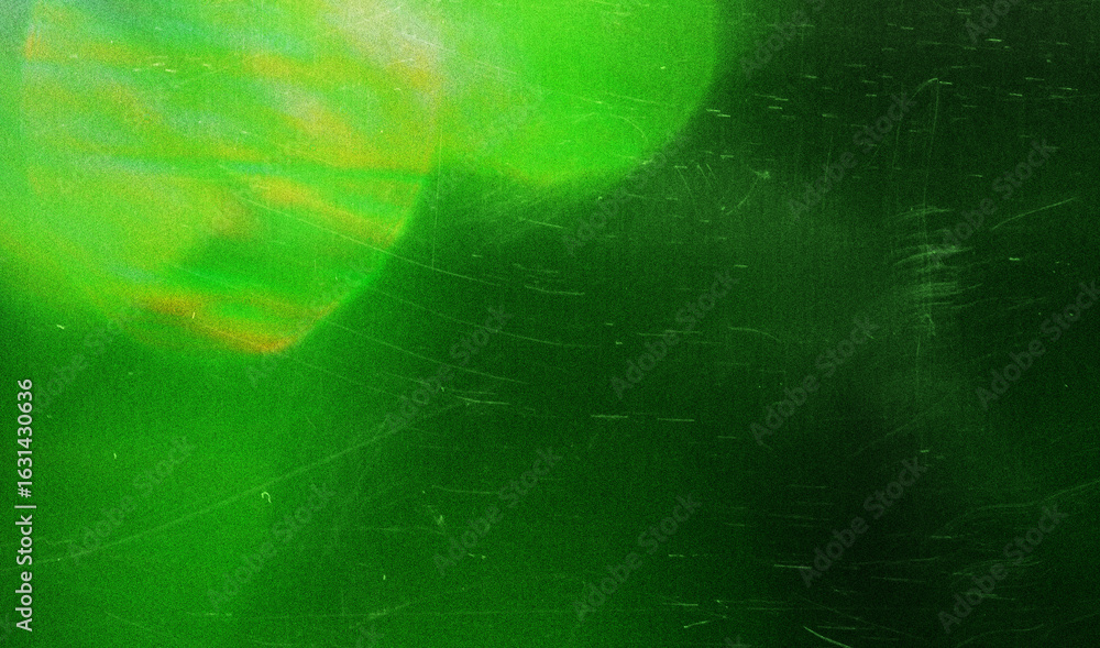 Blurred green light streak combined with grainy noise, faded film marks on black. Faded retro bokeh.
