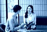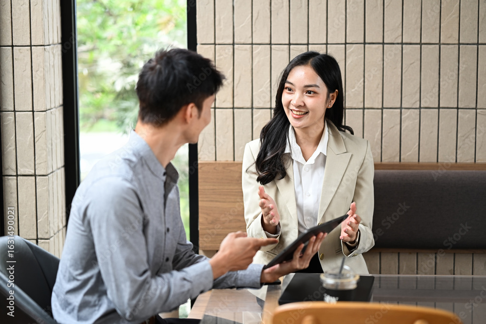 Smiling businesswoman explaining ideas during a meeting with a male colleague