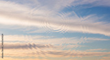 Abstract concept background of surreal sky with water ripple effect, fantasy dreamlike scene showing gentle clouds reflected in peaceful liquid for meditation or philosophy