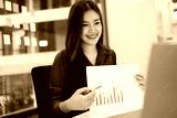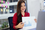 young woman working analysis report on laptop and advisor showing plan. Digital marketing and finance.