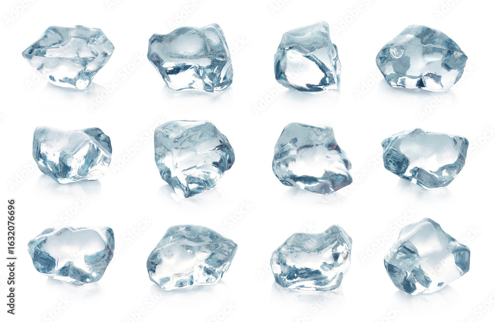 Crystal clear pieces of ice isolated on white background