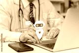 doctor interacts with an AI assistant on a laptop, future of healthcare technology. concept artificial intelligence provides support medical professionals, patient care innovative digital tools.