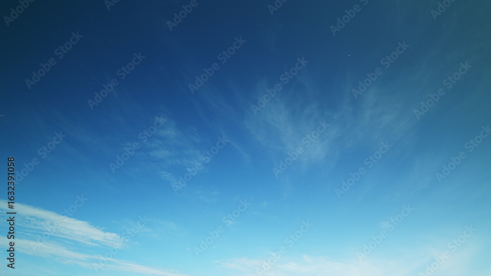 Time lapse. A beautifully clear blue sky scattered with subtle and soft clouds can be seen today