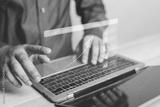 Businessman and rocket start flying up and network line connection. Startup concept Planning and starting corporate business start up, Rocket soars with speed to hit the growth target.