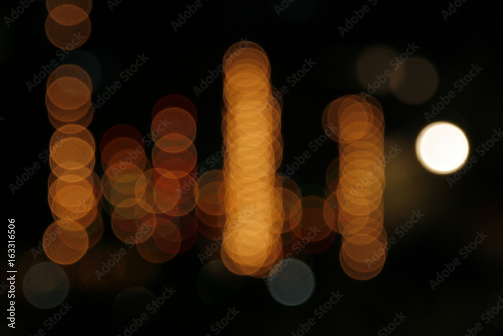 image of blurred bokeh background with warm colorful lights. Abstract circular bokeh background of festival Christmas light