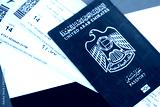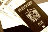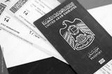 United Arab Emirates passport and boarding pass tickets on flag. The concept of travel and vacation