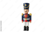 Isolated Classic Wooden Nutcracker Figure in Blue and Red Uniform