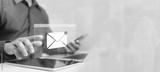 New email notification concept, business online communication, email communication, digital marketing, businessman responding to floating digital interface showing new email notification symbol.