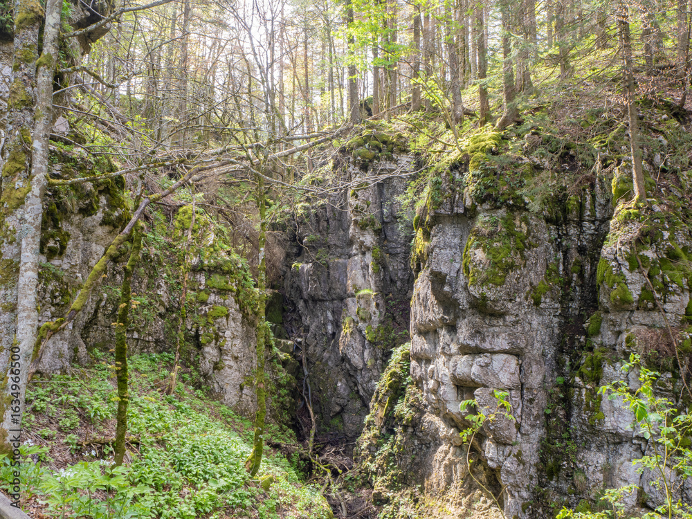 Chasseral, Switzerland - May 26th 2024: Ascent through the wild terrain of Combe Grede.