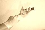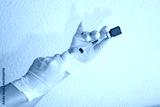 Medical professional preparing vaccine syringe from amber vial in sterile environment