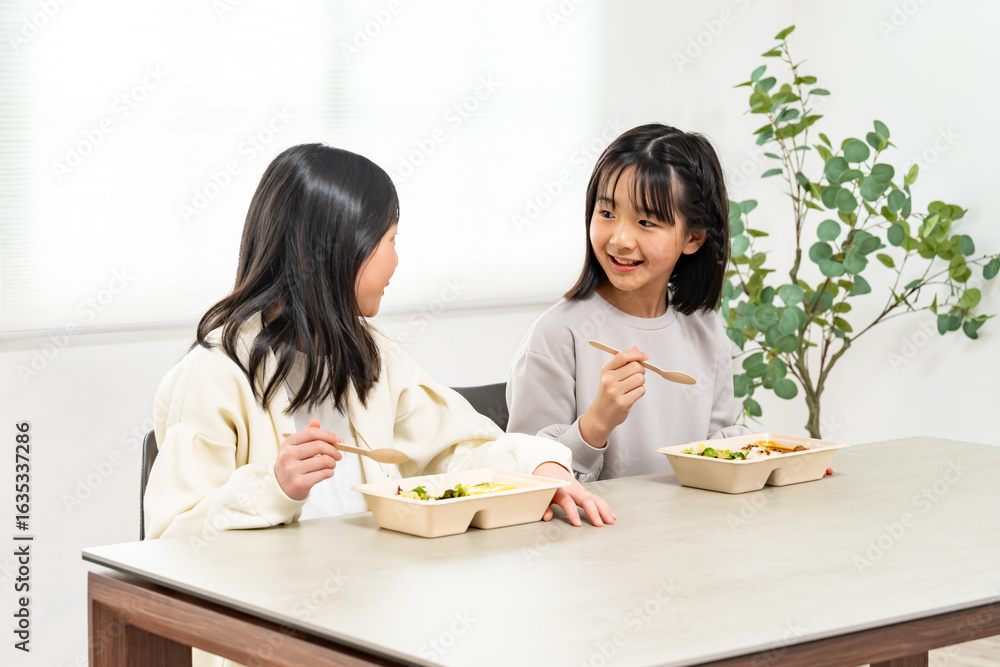 お弁当を食べる女の子