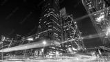 Night view of modern city skyscrapers with light trails