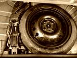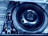 The vehicle trunk features a compact spare tire and a jack compartment specifically designed for emergency situations, ensuring you are prepared for unexpected tire issues during your travels