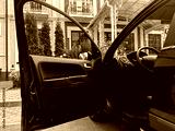 A beautiful blue car with its door open is set against a scenic backdrop, evoking adventure in a lush environment, perfect for travelers seeking exploration and new outdoor experiences