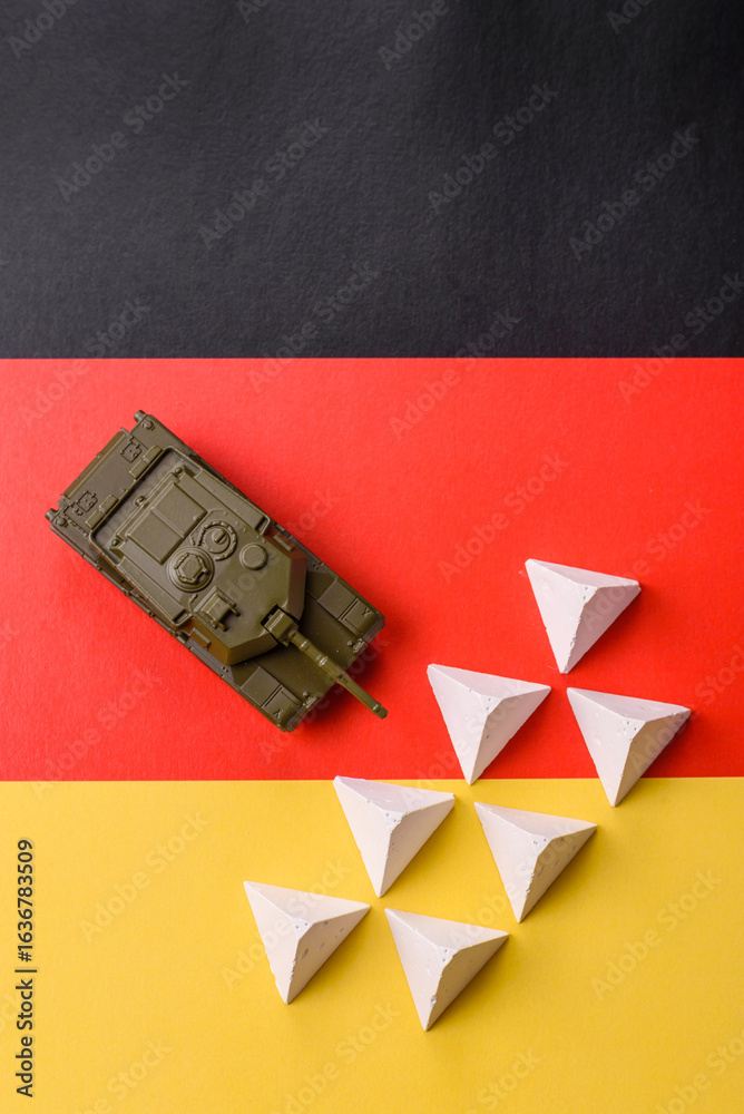 Anti-tank barrier or dragon's teeth made of concrete and iron as a fortification. Dragon's teeth