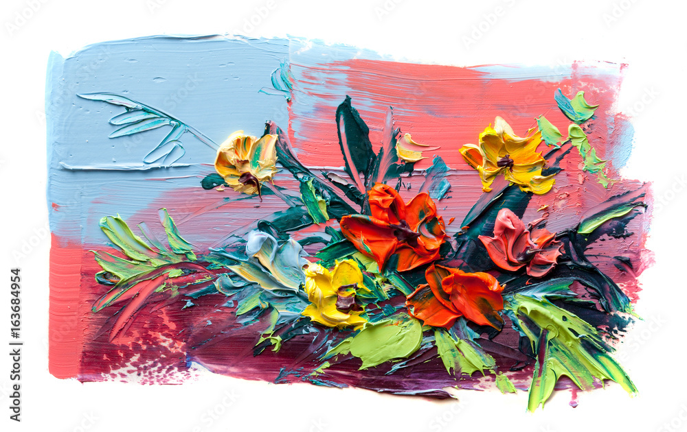 Oil painting flowers. On a white background.