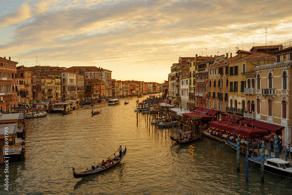 Scenic panorama of Grand Canal at sunset in Venice, Italy