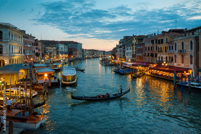 Beautiful night view of Grand Canal, Venice, Italy. Urban landscape.